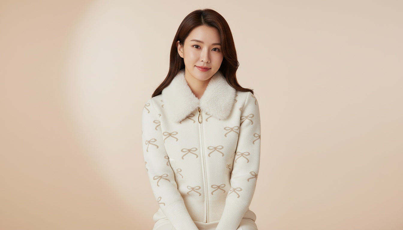 Plum Plaid Zip-Up Knit Jacket with Subtle Sparkle